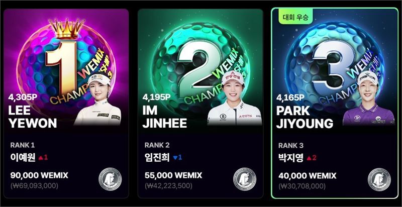 한편, 이번 대회에서 준우승을 한 이예원(KB금융그룹)은 임진희(안강건설)을 제치고 위믹스포인트 랭킹 1위 탈환에 성공했다.