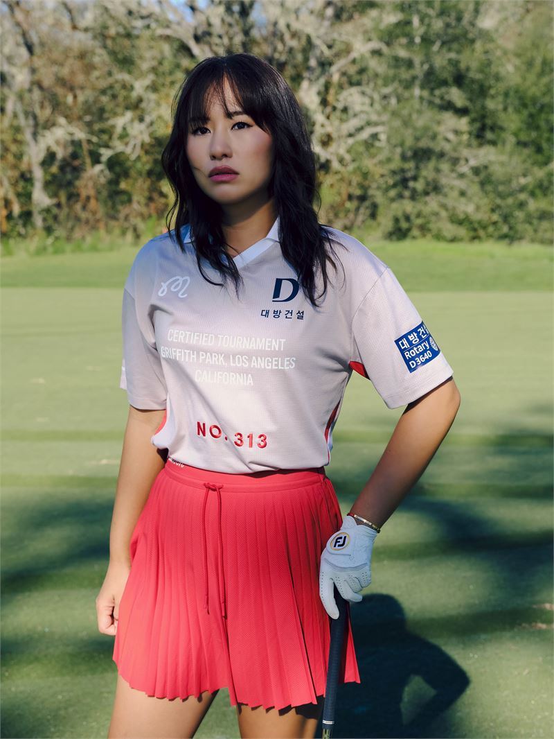 여성 후드 반팔 니트는 후드 디자인과 함께 밑단에 배색이 되는 컬러 포인트를 더해 고급스러우면서 캐주얼한 분위기를 연출할 수 있다. 랩스커트 반바지는 스윙 시 자연스럽게 펼쳐지는 변형 주름 디테일이 여성미와 퍼포먼스 이미지 모두 챙길 수 있다.