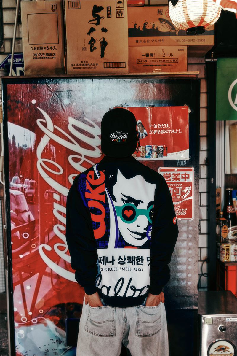 레터링 로고와 그래픽, 한글 등 다양한 요소가 조합된 ‘말본X코카-콜라 도산 프린트 자켓’이 눈길을 끈다. 앞은 말본골프와 코카-콜라의 레터링이 단박에 시선을 끌고 블랙과 레드, 화이트 등 컬러를 대비했다. 뒷면은 코카-콜라 대표 카피 중 하나인 ‘그 언제나 상쾌한 맛’ 여덟 글자로 레트로한 감성과 키치함을 더했고, 코카-콜라 고유의 컨투어 보틀 실루엣을 상징하는 라인과 팝아트 감성의 인물화를 조합해 힙하게 연출했다. 허리와 소매 부분에 고무 밴딩 설계로 착용시 자연스러운 실루엣을 선사한다.