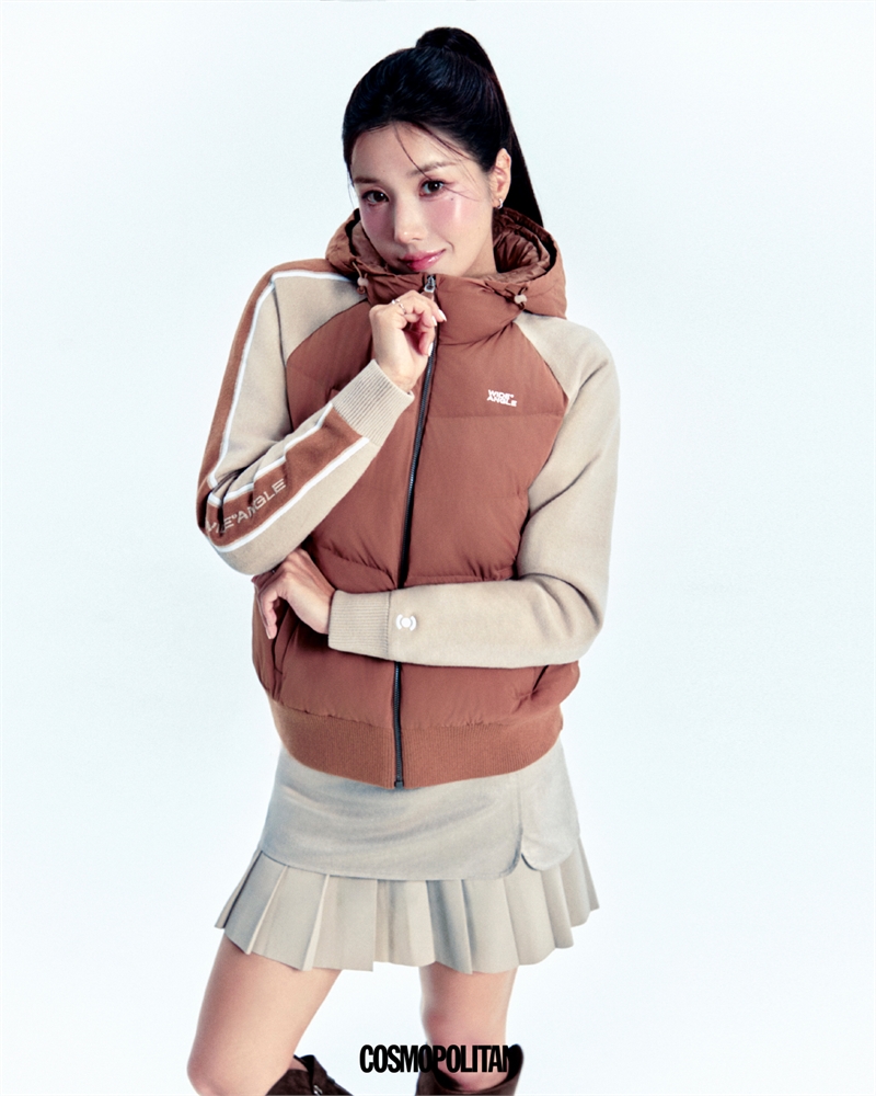 이번 화보는 코스모폴리탄과의 협업으로 진행됐다. 권은비는 우아하면서도 액티브한 이미지를 완벽하게 소화해 와이드앵글의 세련된 골프웨어 스타일을 돋보이게 했다.