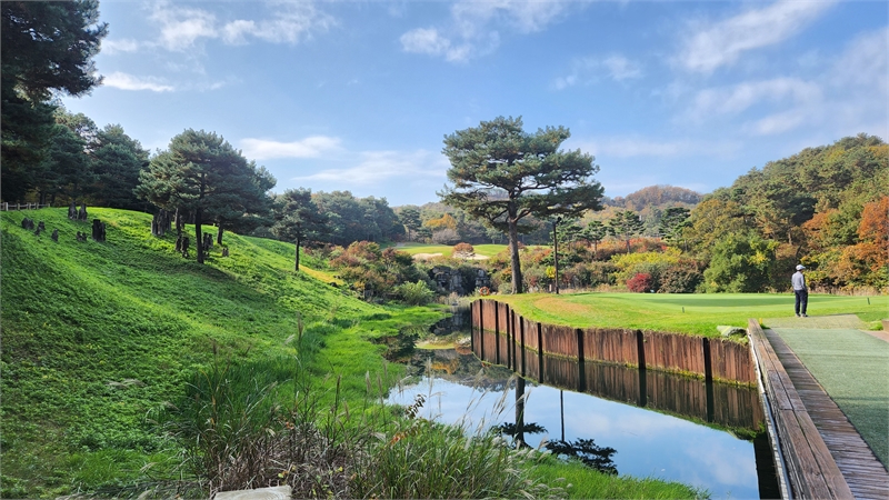 먼저 레이크코스(총 3583Y / PAR36)에는 “보기 좋고 공을 칠만하고 또 어렵기도 하고, 가끔 만만하기도 한 코스가 될 것”이라는 설계자 짐파지오의 철학이 고스란히 담겨 있다. 각 홀마다 사계절을 고루 느낄 수 있는 수목이 정갈한 그린과 어우러져 플레이어를 반기며 기품 있는 자연, 혼을 담은 손길로 빚어낸 전통 한옥과 클럽하우스가 환상적인 하모니를 연출한다.