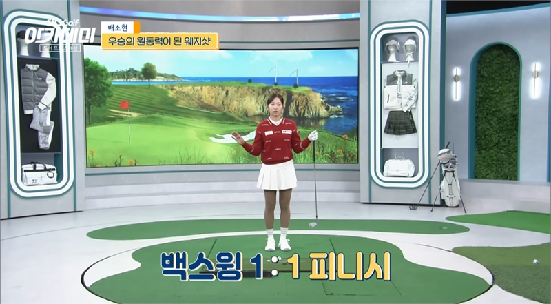 이를 위해서 배 선수는 “테이프를 클럽 뒤쪽에 붙인 후 연습한다. 로프트각이 일정하게 들어오려면 뒤에서부터 풀리지 않아야 하는데 그러려면 이 테이프를 치지 않고 클럽이 들어와야 한다”고 연습드릴을 선보이기도 했다.