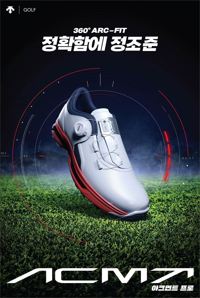제품은 파워스윙에도 발의 흔들림, 뒤틀림을 잡아주는 강력한 고정력, 접지력, 균형감에 초점을 맞췄다. 이를 위해 데상트골프에서 독자적으로 개발한 360도 아크핏 시스템을 적용했다. 360도 아크핏이란 발등을 감싸는 어퍼와 뒤꿈치 힐카운터에서 측면까지 하나의 원단으로 감싼 일체형 한판 패턴 공법을 뜻한다. 틈 없이 완벽한 밀착감을 선사해 풀 스윙에도 견고한 고정력을 제공, 정확한 샷을 돕는다.