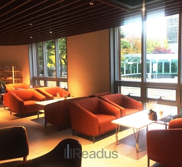 전시관에 들어선 후 왼쪽으로는 소파 형태의 오렌지색 의자가 창밖을 바라볼 수 있는 형태로 놓여있다. 4인 자리로 되어 있어서 홀로 독서나 작업을 위해 찾을 경우 간혹 다른 사람과 같이 자리를 공유하기도 하지만, 어색함은 없다. 간혹 어떤 이들은 따로 의자를 돌려 창밖을 보며 독서를 즐기기도 한다.