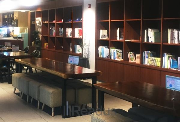 그러나 아이들과 이곳을 방문한 부모도, 호기심에 들어온 연인들도 1층에서 멈칫하게 된다. 1층에 위치한 카페와 휴게 공간은 마치 “여기서는 책을 읽으세요”라고 말하듯이 배치되었기 때문이다. 음료 데스크 왼쪽으로는 국토발전전시관과 관련된 책들이 전시되어 있지만, 교보문고의 커다란 테이블과 같은 형태의 일자형 테이블이 도서관과 같은 느낌을 준다.
